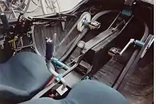 The Twike is a three-wheeled two seater. The two rear wheels are direct-driven via a differential gear by one motor – and optionally additionally by 2 pairs of pedals in the case of the model "active". Twike is steered by joystick – for the right hand of the left-side seated pilot – via cables and has pedal brakes. The vehicle can reach speeds of up to 85 kilometers per hour (53 mph), using 7.4 kWh per 100 km. At 50 km/h it can drive up to 80 km.[2]