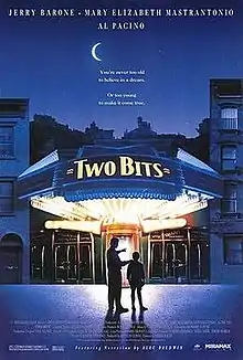 Two Bits is a 1995 American drama film directed by James Foley and starring Al Pacino, Mary Elizabeth Mastrantonio and Jerry Barone. It was written by Joseph Stefano, who considered the film a personal project, with a semi-biographical story. The title refers to the American slang term "two bits", for a quarter dollar.