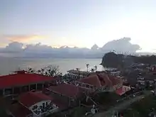 On Kayangel in Palau, a high storm surge damaged several houses,[32] while strong winds downed trees.[16] Despite residents' refusal to evacuate, no fatalities or major injuries took place on the island. Helicopters were flown to the island to survey the damage and provide relief supplies. The government planned to evacuate those who were left homeless from the island.[33] Koror, Babeldaob and Kayangel each lost access to water and power.[16] In Koror, winds reaching as high as 120 km/h (75 mph) blew out rooftops and downed trees and power lines. A causeway linking an offshore hospital to the main island was temporarily shut down after being inundated by water.[54] On the northern end of Babeldaob, Haiyan damaged schools and buildings.[32] Lying closest to Haiyan at the time of the typhoon's passage, Kayangel was flooded in its entirety, and all homes were destroyed. Though no people were killed there, 69 others were displaced by the storm.[54]