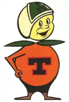 The "Knights of Pegasus" – as the nickname was originally called – was a submission put forth by students, staff, and faculty in 1970 who wished to replace UCF's unpopular original mascot, the Citronaut, which was a mix between an orange and an astronaut. The Knights were also chosen over "Vincent the Vulture," which was a popular unofficial mascot among students at the time.[5] From 1993 through 2007, the teams were known as the Golden Knights. In 1994, Knightro debuted as the Golden Knights' official athletic mascot.[6] Since 2014, the Citronaut has made a limited return for some "throwback" games in football.