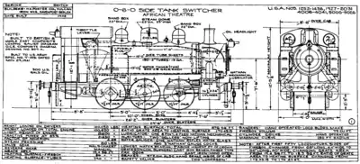 The S100 is a side tank design by Col. Howard G. Hill. In 1942, the USATC ordered 382 S100s from Davenport Locomotive Works of Iowa, H. K. Porter, Inc, of Pittsburgh and Vulcan Iron Works of Wilkes-Barre. They were shipped to Great Britain in 1943, where they were stored until 1944. After D-Day, they were shipped to Continental Europe.