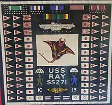 For action during World War II, Ray was awarded seven battle stars, the Navy Unit Commendation (for patrol 6), and the Philippine Republic Presidential Unit Citation.