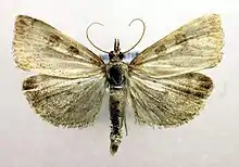 Udea elutalis is a species of moth in the family Crambidae.[1] The species was first described by Michael Denis and Ignaz Schiffermüller in 1775. It is found in Spain, France, Germany, Switzerland, Austria, Italy, Slovakia, the Czech Republic, Poland, Romania, Estonia, Finland, Russia[2] and Kazakhstan.[1] It is also found in China (Hebei, Xinjiang).[3]