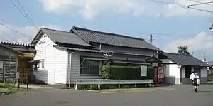 The station consists of two side platforms serving two tracks at grade. Two sidings branch off track 2. The station building is a wooden structure in Japanese style. The ticket window is managed by a Kan'i itaku agent and is equipped with a POS machine but does not have a Midori no Madoguchi facility. Access to the opposite side platform is by means of a footbridge.[3][2][4]