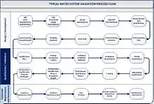 Ultrapure water validation must utilize a risk-based lifecycle approach.[15][16][17][18] This approach consists of three stages – design and development, qualification, and continued verification. One should utilize current regulatory guidance to comply with regulatory expectations. Typical guidance documents to consult at the time of writing are: FDA Guide to Inspections of High Purity Water Systems, High Purity Water Systems (7/93),[19] the EMEA CPMP/CVMP Note for Guidance on Quality of Water for Pharmaceutical Use (London, 2002),[20] and USP Monograph <1231> Water For Pharmaceutical Purposes.[21] However, other jurisdictions' documents may exist, and it is a responsibility of practitioners validating water systems to consult those. Currently, the World Health Organization (WHO) [22] as well as the Pharmaceutical Inspection Co-operation Scheme (PIC/S) [23] developed technical documents which outline validation requirements and strategies for water systems.
