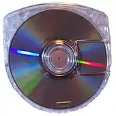 The Universal Media Disc (UMD) is a discontinued optical disc medium developed by Sony for use on its PlayStation Portable handheld gaming and multimedia platform. It can hold up to 1.8 gigabytes of data and is capable of storing video games, feature-length films, and music. UMD was the trademark of Sony Computer Entertainment for their optical disk cartridge (ODC).[1]