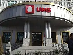 Universal Mobile Systems is an Uzbek-Russian telecommunications company, which provides mobile network to Republic of Uzbekistan.[2] Universal Mobile Systems was early MTS (Mobile TeleSystems GEET, rus. Мобильные ТелеСистемы), until summer of 2012, when law enforcement authorities of Uzbekistan suspected top management operator of embezzlement and tax evasion.[3] According to the settlement agreement, MTS has a stake in 50.01% of the share capital of UMS, the remaining share is transferred to the Republican State Unitary Enterprise "Center for radio broadcasting and television", which is administered by the State Committee of communication of Uzbekistan. The joint venture will work on infrastructure Uzdunorbita - former subsidiary of MTS in the country.[4] In 2019, UMS was rebranded as Mobiuz.[5]