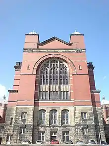 The campus has a wide diversity in architectural types and architects. "What makes Birmingham so exceptional among the Red Brick universities is the deployment of so many other major Modernist practices: only Oxford and Cambridge boast greater selections".[56] The Guild of Students original section was designed by Birmingham inter-war architect Holland Hobbiss who also designed the King Edward's School opposite. It was described as "Redbrick Tudorish" by Nikolaus Pevsner.[57]
