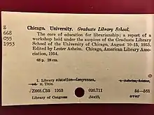 The University of Chicago Graduate Library School (GLS) was established in 1928 to develop a program for the graduate education of librarians with a focus on research.[1] Housed for a time in the Joseph Regenstein Library, the GLS closed in 1989.[2] GLS faculty were among the most prominent researchers in librarianship in the twentieth century. Alumni of the school have made a great impact on the profession including Hugh Atkinson, Susan Grey Akers, Bernard Berelson, Michèle Cloonan, El Sayed Mahmoud El Sheniti, Eliza Atkins Gleason, Frances E. Henne, Virginia Lacy Jones, Judith Krug, Lowell Martin, [3] Miriam Matthews, Kathleen de la Peña McCook, Elizabeth Homer Morton, Benjamin E. Powell, W. Boyd Rayward, Charlemae Hill Rollins, Katherine Schipper, Ralph R. Shaw, Spencer Shaw, Peggy Sullivan, Maurice Tauber and Tsuen-hsuin Tsien.