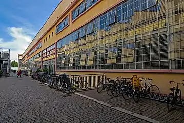 PhD studies are usually offered and arranged by the departments. The lectures are mostly given in Italian, except for a number of courses at the faculty of foreign languages and literature, some scientific programmes, such as the international MSc in aerospace engineering (EuMAS), Master in Business Informatics, the Master of Science in Space Engineering[3] and the Master in Computer Science and Networking,[4] jointly offered with Scuola Superiore Sant'Anna. Students also have at their disposal a language centre, where they can attend courses in foreign languages, a sports centre (Cus Pisa) that arranges for many sports intramural leagues and allows sports practice in almost all the disciplines available in Italy, and six university refectories (Mense universitarie). The University of Pisa is not organized in the form of one unique campus, but rather its many buildings are scattered throughout the whole Pisa area, especially in the city centre.