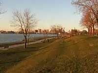Located in Canada's traditional "automotive capital" across the border from Detroit, the campus is near the United States and its busy port of entry to and from the United States. It is framed by the Ambassador Bridge to the west and the Detroit River to the north.