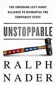 Unstoppable: The Emerging Left–Right Alliance to Dismantle the Corporate State is a non-fiction book by American consumer advocate and politician Ralph Nader, published in 2014 by Nation Books. Nader argues that there are many issues which progressives, libertarians and conservatives can agree on, such as opposition to "free trade" agreements, too much Wall Street influence in Washington, opposition to "corporate welfare", preservation of civil liberties, opposition to foreign military entanglements, etc., and that by working together they can defeat entrenched interest groups and achieve their desired policy outcomes.[1]