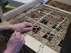Hardwood destined for upholstery frames is primarily air-dried.[2] Hardwood frames for high-end furniture are often constructed from kiln-dried mixed hardwoods. Beech, birch, white ash, and mahogany all have acceptable combinations of strength, availability (country dependent), workability, and cost to be superior wood products for frame making.[3] White oak, red oak, and American elm are good, and hard maple is an acceptable framing wood. Softwoods can make poor frames, but are used in low end furniture manufacturing, particularly with partially upholstered frames on larger pieces in the United States. In Scandinavia, better quality softwoods are available and are used with suitable furniture making and upholstery techniques that their use is more common in furniture of a variety of qualities.