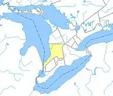 ![]() Map of Upper Canada (orange) with 21st-century Canada (pink) surrounding it | |||||||||