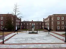 The Upper School building from inside the Massey Quadrangle; at centre is the Prince of Wales doors, once reserved for the exclusive use of stewards