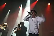 In the late 1980s, Upper Hutt Posse became the first New Zealand band to record a bilingual rap song, "E Tu", which combined western pop-rock styles with more obvious Māori influences.[3] The influence of Upper Hutt Posse's music, and that of other bands experimenting with cross-cultural popular music, led to increasing interest in hybrid Pacific/western pop and rock, particularly among urban Māori.