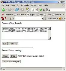 VTun is a networking application which can set up Virtual Tunnels over TCP/IP networks. It supports Internet Protocol (IP), Point-to-Point Protocol (PPP) and Serial Line Internet Protocol (SLIP) protocols. It exists as the reference implementation of the Tun/Tap user-space tunnel driver which was included in the Linux kernel as of version 2.4, also originally developed by Maxim Krasnyansky. Bishop Clark is the current maintainer.