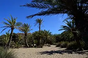 Vai or more accurately Vaï (Greek: Βάι),[lower-roman 2] Greek for "palm,"[2][lower-roman 3] is a region of east Crete between Cape Sidero and Cape Plaka, just south of the site of ancient Itanus but north of the villages that surround and are part of Palaikastro. Vai does not belong to them nor is it part of any civic unit of the local civic division of Greece. It is not itself an official village.[lower-roman 4] The region is somewhat isolated on the isolated northeast peninsula, connecting only to Eparchos odos moni Toplou, the only road between Palaikastro and Toplou Monastery.[lower-roman 5] The entire distance is essentially trackless and deserted, as the name of one of the beaches at Itanus suggests, Eremoupolis, "deserted city".