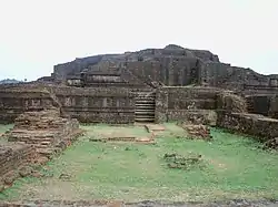 Harishena (c. 475–500) succeeded his father Devasena. He was a great patron of Buddhist architecture, art and culture. The World Heritage monument Ajanta Caves is surviving example of his works. The rock cut architectural cell-XVI inscription of Ajanta states that he conquered Avanti (Malwa) in the north, Kosala (Chhattisgarh), Kalinga and Andhra in the east, Lata (Central and Southern Gujarat) and Trikuta (Nasik district) in the west and Kuntala (Southern Maharashtra) in the south.[11][14] Varahadeva, a minister of Harishena and the son of Hastibhoja, excavated the rock-cut vihara of Cave XVI of Ajanta.[9] Three of the Buddhist caves at Ajanta, two viharas – caves XVI and XVII and a chaitya – cave XIX were excavated and decorated with painting and sculptures during the reign of Harishena.[11] According to an art historian, Walter M. Spink, all the rock-cut monuments of Ajanta excluding caves nos. 9,10,12,13 and 15A (Ref: Page No. 4, Ajanta-A Brief History and Guide – Walter M. Spink) were built during Harishena's reign.[15]