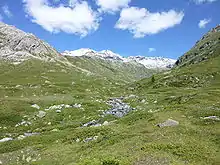 Val Minor is a valley in the municipal area of Pontresina, north of the Bernina Pass in Canton of Graubünden, Switzerland. The valley is at an elevation of around 2,400 m (7,900 ft). The valley entrance lies between the Piz Lagalb and Piz Alv. Val Minor is flanked by Piz Alv and Piz Minor on the right and Piz Lagalb on the left. At the end of the valley is the mountain lake Lej Minor. At present, it is accessible on foot or by bicycle.