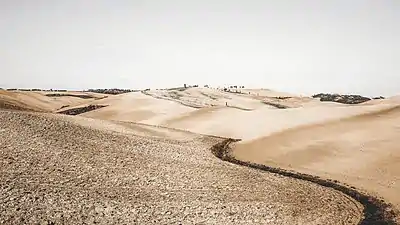 The Val d'Orcia or Valdorcia (Italian pronunciation: [ˌvalˈdortʃa]) is a region of Tuscany, central Italy, which extends from the hills south of Siena to Monte Amiata. Its gentle, cultivated hills are occasionally broken by gullies and by picturesque towns and villages such as Pienza (rebuilt as an "ideal town" in the 15th century under the patronage of Pope Pius II),[1] Radicofani (home to the notorious brigand-hero Ghino di Tacco) and Montalcino (the Brunello di Montalcino is counted among the most prestigious of Italian wines).[2] Its landscape has been depicted in works of art from Renaissance painting to modern photography.