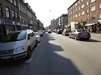 Valby Langgade is one of the main streets of the Valby district of Copenhagen, Denmark. The c. 3.2 km long street runs from the southern end of Pile Allé and the Carlsberg neighbourhood in the east to Roskildevej at Damhus Lake in the west. The square and side street Valby Tingsted was the centre of the original village of Valby.