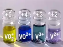 Solutions of Vanadium sulfates in four different oxidation states of vanadium.