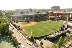 The oldest part of the Vanderbilt campus is known for its abundance of trees and green space, which stand in contrast to the surrounding cityscape of urban Nashville.[144] The campus was designated as a national arboretum in 1988 by the Association of Botanical Gardens and Arboreta, and in 2020 it was accredited as a Level II arboretum by ArbNet.[145] Approximately 190 species of trees and shrubs can be found on campus.[144] One tree, the Bicentennial Oak between Rand Hall and Garland Hall, was certified to have lived during the American Revolution and was the oldest living thing on the campus.[144] The Bicentennial Oak succumbed to age-related decay and fell on November 12, 2022. [146] In December 2015, a hackberry tree fell, leaving 10 students injured with "broken bones and stitches."[147][148] Additionally, in August 2022, a tree fell on Peabody Lawn, leaving two students injured.[149]