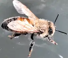 The Varroa mite can reproduce only in a honey bee colony. It attaches to the body of the bee and weakens the bee by sucking fat bodies.[2] The species is a vector for at least five debilitating bee viruses,[2] including RNA viruses such as the deformed wing virus (DWV). A significant mite infestation leads to the death of a honey bee colony, usually in the late autumn through early spring. The Varroa mite is the parasite with possibly the most pronounced economic impact on the beekeeping industry. Varroa is considered to be one of multiple stress factors[3] contributing to the higher levels of bee losses around the world.