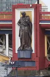 Frampton resigned from the project through pressure of work,[19] and Drury and Pomeroy carried out the project, each contributing four monumental statues, which were installed in late 1907. On the upstream piers are Pomeroy's Agriculture, Architecture, Engineering and Pottery, whilst on the downstream piers are Drury's Science, Fine Arts, Local Government and Education. Each statue weighs approximately two tons.[22] Despite their size, the statues are little-noticed by users of the bridge as they are not visible from the bridge itself, but only from the river banks or from passing shipping.[16]