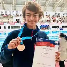 Vedaant Madhavan (born 21 August 2005)[1][2] is an Indian swimmer.[3][4] He also won the 48th Junior National Aquatics Championships which was held in India, winning 4 gold medals and 3 silver.[5][6][7][8] He also broke records in Indian history by completing the 1500m freestyle within 16:01.73 seconds.[9][10][11][12][13] In the Malaysian Open 2023, he won 5 gold medals for the country.