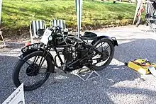 The Velocette Spring Heeled Jack is a motorcycle built by Velocette at Hall Green, Birmingham, England. This famous works KSS 350cc, sprung frame, Velocette was a prototype and as such the only one ever built by the Hall Green factory. The bike was christened Spring-heeled Jack by Harold Willis, and has been known by that name ever since by enthusiasts all over the world. First registered in May 1927, the motorcycle was a one-off built for Alec Bennett, the factory's number one rider, and was unsuccessfully tried in the practice sessions of the 1928 Isle of Man TT. This bike retained the factories hand change mechanism although the positive stop foot change was to be seen on the other race bikes of that year, and also had a straight through exhaust pipe.