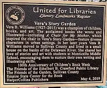 - "Literary Landmark: Vera's Story Garden – Vera B. Williams". May 24, 2019.