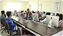 In addition to 12 computer laboratories, the Institute has set up a state of the art 'Central Computing Centre'. An area of 300 sq m is dedicated for the Computer Centre. Apart from IBM compatible P4 desktops, the Centre has Apple Mac desktops and Sun Blade Workstations. All these computers are networked and backed up with various legal operating systems & application software along with printing & scanning devices.[12]