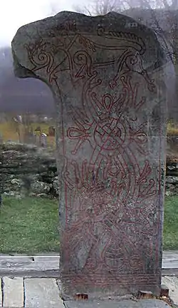 The Urnes Style was the last phase of Scandinavian animal art during the second half of the 11th century and in the early 12th century.[20] The Urnes Style is named after the northern gate of the Urnes stave church in Norway, but most objects in the style are runestones in Uppland, Sweden, which is why some scholars prefer to call it the Runestone style.[20]