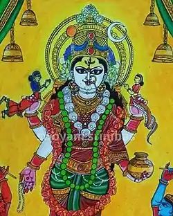 The Tantric work Kubjika Tantra names Vimala among 42 Siddha Pithas, where Siddhis - a set of supernatural powers - can be gained.[15] The Devi Bhagavata Purana, Prana Toshini Tantra and Brihan Nila Tantra name the Vimala temple as a Pitha in their list of 108 temples.[16][17] The Matsya Purana mentions Purushottama Kshetra with goddess Vimala as a Shakti Pitha. The Vamana Purana notes it as a sacred pilgrimage site. The Mahapitha Nirupanam also mentions Vimala and Jagannath as deities of the Pitha. In the Namasttotra Sata, a Puranic list of 100 mother goddesses, Vimala of Purushottama is named.[17] The Devi Purana also mentions it as a Pitha where the feet of Sati fell.[18][1][2]