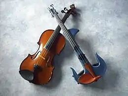 The instrument which corresponds to the violin in the violin octet is the mezzo violin, tuned the same as a violin but with a slightly longer body. The strings of the mezzo violin are the same length as those of the standard violin. This instrument is not in common use.[32]