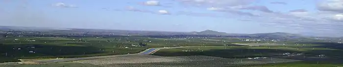 The highest point in the Visalia–Porterville area is Mount Whitney.[28] Located at the far reaches of the Sierra Nevada roughly 58 mi (93 km) east of the city, it reaches a height of 14,505 ft (4,421 m), and was long famous as the highest mountain in the lower 48 states. The hilliest parts of the Visalia area are the Venice Hills and the entire Sierra Nevada foothills east of the city. Four main streams run through the city. The major stream is the St. John's River, which begins at the diversion dam in the Kaweah River and is largely seasonal. The others are Mill Creek, Cameron Creek, and Packwood Creek. Many smaller creeks also flow through the city. The Friant-Kern Canal runs just east of the city along the western edge of the Sierra Nevada foothills.
