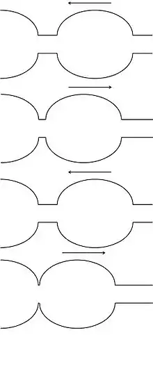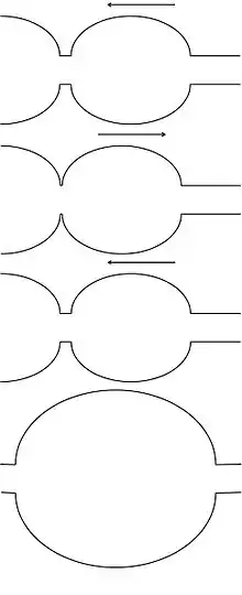 In drop draining a small bead between two beads gets smaller in size and the fluid particle moves towards the adjacent beads. The smaller bead drains out as shown in the figure.
