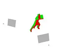 A visual hull is a geometric entity created by shape-from-silhouette 3D reconstruction technique introduced by A. Laurentini. This technique assumes the foreground object in an image can be separated from the background. Under this assumption, the original image can be thresholded into a foreground/background binary image, which we call a silhouette image. The foreground mask, known as a silhouette, is the 2D projection of the corresponding 3D foreground object. Along with the camera viewing parameters, the silhouette defines a back-projected generalized cone that contains the actual object. This cone is called a silhouette cone. The upper right thumbnail shows two such cones produced from two silhouette images taken from different viewpoints. The intersection of the two cones is called a visual hull,[1] which is a bounding geometry of the actual 3D object (see the bottom right thumbnail). When the reconstructed geometry is only used for rendering from a different viewpoint, the implicit reconstruction together with rendering can be done using graphics hardware.[2]