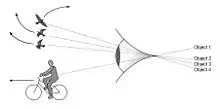 The traditional view of visual perception holds that attention is fundamental to visual processing. In terms of an analogy offered by Posner, Snyder and Davidson (1980): "Attention can be likened to a spotlight that enhances the efficiency of detection of events within its beam".[4] This spotlight can be controlled volitionally, or drawn involuntarily to salient elements of a scene,[5] but a key characteristic is that it can only be deployed to one location at a time. In 1986, Eriksen and St. James conducted a series of experiments which suggested that the spotlight of attention comes equipped with a zoom-lens. The zoom-lens allows the size of the area of attentional focus to be expanded (but due to a fixed limit on available attentional resources, only at the expense of processing efficiency).[6]