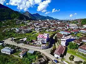 Viswema (/ˈviswɛmə/), is a Southern Angami Naga village located 22 km south of Kohima, the capital of Nagaland, India. With a resident population of 7417, it is the second biggest village in the state and is part of the contiguous built-up of the Kohima Metropolitan Area that extends into the neighboring areas of Jakhama, Kigwema and Khuzama in the Southern Angami region, forming the second largest urban agglomerations in Nagaland. Its vast territory also lies across the inter-state boundary in Manipur where notable features including Mount Tempü (Iso) at 9822 feet (2994m) also the highest peak in Manipur, the thick forest of Kezol-tsa and a major portion of the Dzüko Valley is located.