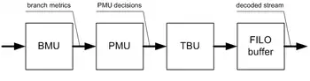 A hardware Viterbi decoder for basic (not punctured) code usually consists of the following major blocks: