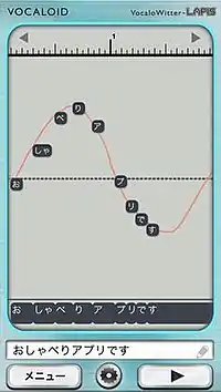 Mobile Vocaloid Editor is an iPad and iPhone version of the Vocaloid 4 engine. It comes with VY1 "Lite" as standard and demo songs are bundled with the app. The app offers "DYN", "PIT" and "VIB" and handles 16 tracks of data. It can do 999 bars of music, but, in comparison to the full Vocaloid 4 editor, cannot do "growl" or "cross-synthesis".[53][54] The input entries of the app differ from the normal Vocaloid 4 method of importing data. Most functions can be used with one or two fingers and it is possible to draw parameter lines with a single finger. Compared also to iVocaloid, it can achieve the full C2~G8 range of notes. Despite the inclusion of English vocals, it currently has no English interface and is sold only in Japan.