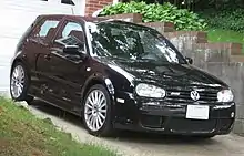 Volkswagen began production of the Mk4 R32 in 2002, for the 2003 model year. It was the world's first production car with a dual-clutch gearbox (DSG) — available for the German market.[2] Due to unexpected popularity, Volkswagen decided to sell the car in the United States and Australia as the 2004 model year Volkswagen R32. Billed as the pinnacle of the Golf IV platform, the R32 included every performance, safety, and luxury feature Volkswagen had to offer, including the all new 3,189 cc (3.2 L; 194.6 cu in) DOHC 4 valves per cylinder VR6 engine (ID codes: BFH/BML), which produced a rated motive power output of 241 PS (238 bhp; 177 kW) at 6,250 rpm and 320 N⋅m (236 lb⋅ft) at 2,800 rpm of torque.[3] Further additions included Haldex Traction-based 4motion on-demand four-wheel drive system, a new six-speed manual transmission, independent rear suspension, Climatronic automatic climate control, sport seats from König with R32 badging, 18" OZ Aristo alloy wheels (Ronal produced the wheels towards the end of production), Electronic Stability Programme, larger 334 mm (13.1 in) disc brakes with gloss blue painted calipers, sunroof (for the US), Xenon Headlamps (for Europa), and model-specific bodywork additions.