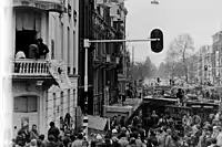 Vondelstraat is a major street in the centre of Amsterdam and was the location of a large squatting squad that occupied property. On 29 February, the state evicted squatters from a building on the corner of Vondelstraat and Eerste Constantijn Huygensstraat. Amid violent protests from hundreds of squatters, who reoccupied the building and built huge barricades, over a thousand police officers and soldiers were deployed to stop their actions.[1]