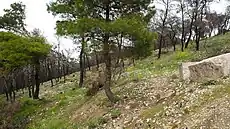 The hill was residented during a period when the cadastre and the distinction of the urban and forestry areas were at a primal stage (and still are in 2007 for Greece). The south area of the hill looking at the Athens basin was included in the urban design of Vrilissia and the street layout approved was implemented. However, at the east of the Patima of Vrilissia residential settlement, beyond the steep Kalavriton (Kalavrita) Street, still lies a forestry area that has not been recognized nor by the plan of Vrilissia, neither by Penteli. This area is known as "Krassas Settlement", which has been a point of scepticism for the various municipal authorities that governed the suburb. The need for applying the law often stumbled at social dilemmas, with resulted to the few residents of the settlement being cut away from any form of transportation or other urban convenience applied, but with the municipality also being unable to utilise part of its forestry heritage. This area amounts roughly to 0.045 km2 (0.017 sq mi), of which the 0.010 are inhabited. The latest proposals of the municipal council suggested concession of 500 m2 (5,400 sq ft) per household to those who abide by the criteria of the law (that allocate titles of purchase of the land inhabited). The municipality, according to the same proposal, claims the remaining indisposed land at the region of 0.030 km2 (0.012 sq mi) plus those that in collaboration with the forestry service of Penteli will be declared as forestry. As a result of the above, a few months before the summer of 2007 it had been forecast that 0.040 km2 (0.015 sq mi) of forestry land would be acquired and utilised by the municipality.[4] Still, some local papers forecast negative events, as this would stimulate the appetite of many.
