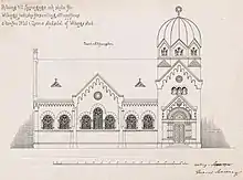 Original design was made by Finnish architect Gerhard Sohlberg in 1905 and the synagogue was built in 1909–1910 after some modifications by construction engineer Viktor Riihelä.[1] It was completely destroyed by Soviet air bombings on the first day of Winter War, 30 November 1939.[2]