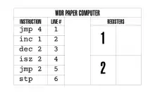 The WDR paper computer or Know-how Computer is an educational model of a computer consisting only of a pen, a sheet of paper, and individual matches in the most simple case.[1] This allows anyone interested to learn how to program without having an electronic computer at their disposal.