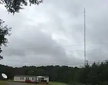 The single broadcasting antenna tower and studios used by WJBB and W296CX as seen from the west looking from Arch Tanner Road in Bethlehem, Georgia.